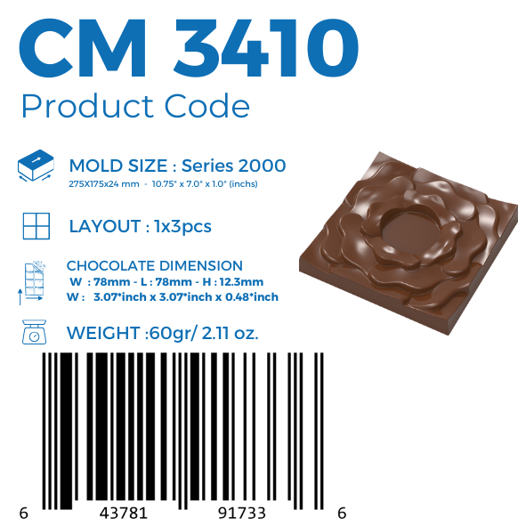 - 🍫 CM 3410 ROSE SQUARE TABLET 60gr CHOCOLATE MOULD
